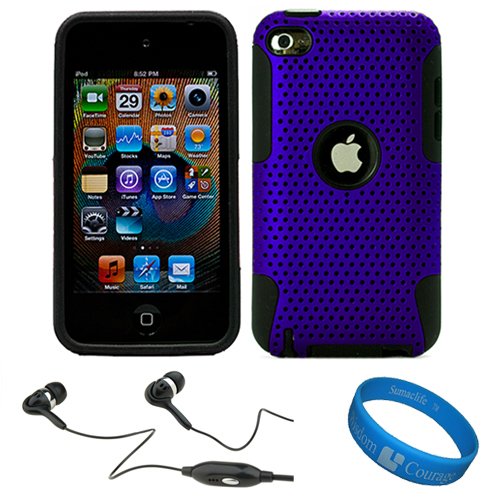 Provides iPod maximum protection against bumps, dents, and scratches. Safely carry and protect you iPod Touch 4 Newest Generation / iPod Touch 5 with this dual protective case cover. This elegant case cover has been perfectly manufactured to fit and compliment the mold of the iPod Touch with a soft-smooth texture. This case provides your iPod Touch with two layers of protection. The exterior of this case has been manufactured of a durable poly carbonated material and its interior has been made of a gel silicone that protects and prevents unnecessary fingerprints, dents, and scratches form accumulating on you iPod . When it comes to your daily travel and protection needs this case is the perfect solution. You'll be impressed with not only the quality but the style and design of this case. (iPOD TOUCH NOT INCLUDED) (Case fits both iPod Touch 5th Gen and iPod Touch 4th Gen) + INCLUDES!!! SumacLife TM Wisdom Courage Wristband + INCLUDES!!! Handsfree Headphones with Mic.Hi-Fi Noise Reducing Headphones / Earbuds so you can listen to your tunes without disturbing others. Stereo Headset provides superior comfort, fit, and sound quality.